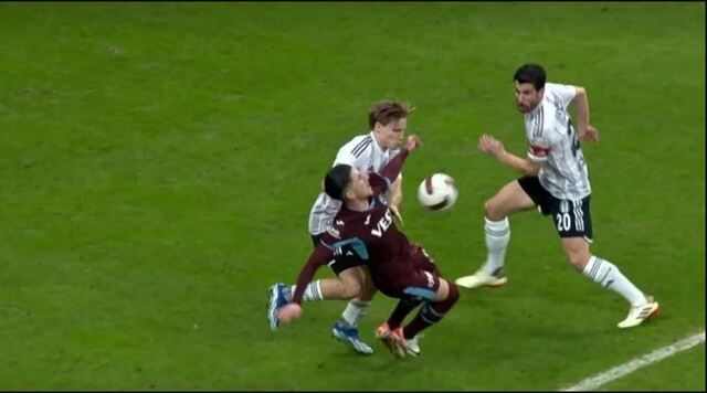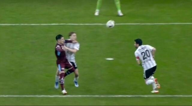 Bülent Yıldırım: Svensson'un arkası dönük, topu göğsüyle indirmek isteyen rakibine karşı dizini çıkarması dikkatli bir hamle mi, doğal bir mücadele mi. Forma zaten sünüyor. Diz darbesi olmasa savrulacak zaten. VAR'daki arkadaşlar dikkatli olacak, formayı çekme de diz darbesi de hakeme kapalı. Yoruma açık, şarj içeren bir pozisyon mu bu? Somut kanıt var mı? Var.
