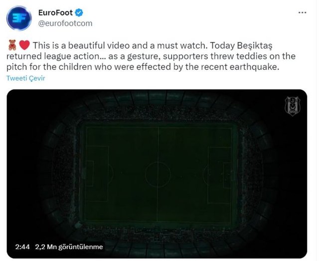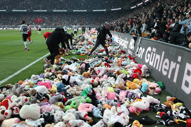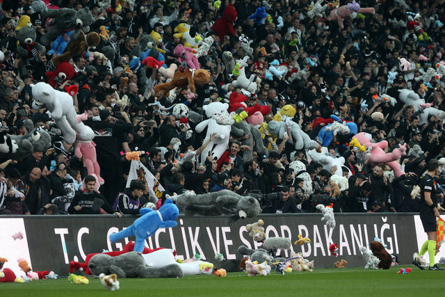 Mundodeportivo (İspanya): Beşiktaş stadına pelüş yağmuru! Türk takımının taraftarları, Antalyaspor maçında depremden etkilenen çocuklara bağışlamak için binlerce pelüş oyuncağı sahaya fırlattı.
