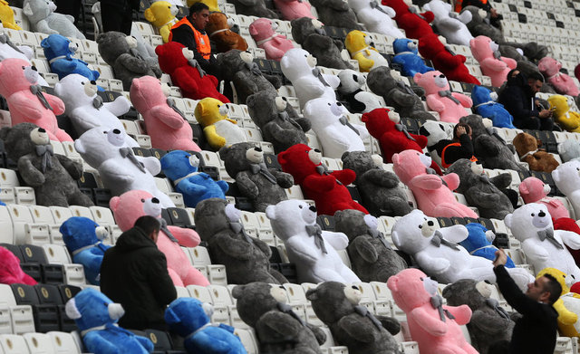 Futbolred (İspanya): Türkiye'de duygusal jest: Beşiktaş maçında pelüş hayvan yağmuru. Çimlere düşen oyuncak bebeklerin sayısı o kadar fazlaydı ki, her iki takımın oyuncuları da gözlerinde yaşlarla, Beşiktaş yetkililerine yardım etmek zorunda kaldı. Çok heyecan vericiydi.