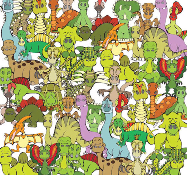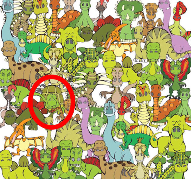 Dinozorların arasına saklanan kaplumbağayı bulun.