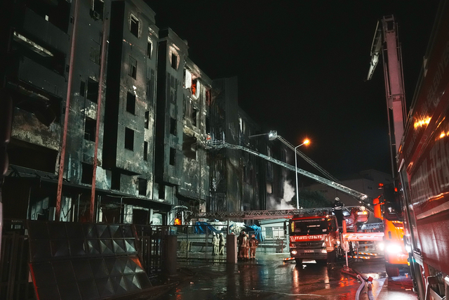 İstanbul Beylikdüzü Organize Sanayi Bölgesi'nde plastik malzeme fabrikasında dün çıkan yangın kısmen kontrol altına alındı. Alevlere 124 araç ve 300 itfaiye ekibiyle müdahale edildi. Ekiplerin yangına müdahalesi sürerken, binanın çökme riskine karşı bölgede geniş güvenlik önlemi alındı.