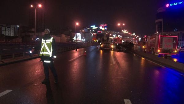 Sürücüsünün kontrolünden çıkan araç, önünde seyreden Barış Alataş'ın (22) kullandığı otomobile arkadan çarptı. Savrulan otomobil yaklaşık 50 metre sürüklenerek dururken, Alataş'ın otomobili de kontrolden çıkarak önünde seyreden İstanbul Büyükşehir Belediyesine ait temizlik aracına çarparak durabildi.