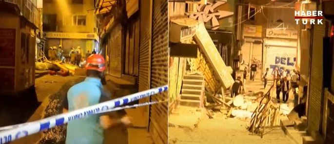 Beyoğlu'ndaki bir binada patlama sesinin ardından çökme meydana geldi. İtfaiye arama çalışması yapıyor. Habertürk muhabiri Elif Yavuz, binanın alt katının yiyecek içecek büfesi, üst katının ise ambalaj satan bir dükkan olduğunu ve olayda ölü ya da yaralı bulunmadığını belirtti. İstanbul Valisi Davut Gül, patlamayla ilgili olarak "büfede bulunan 2 tüpün patladığı düşünülüyor" dedi.