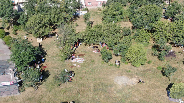 Burada bulabildikleri ağaç altlarında hijyenik olmayan şartlarda kurbanlarını kesen vatandaşlar, etleri parçalayıp bölüştükten sonra alanlardan ayrıldı.