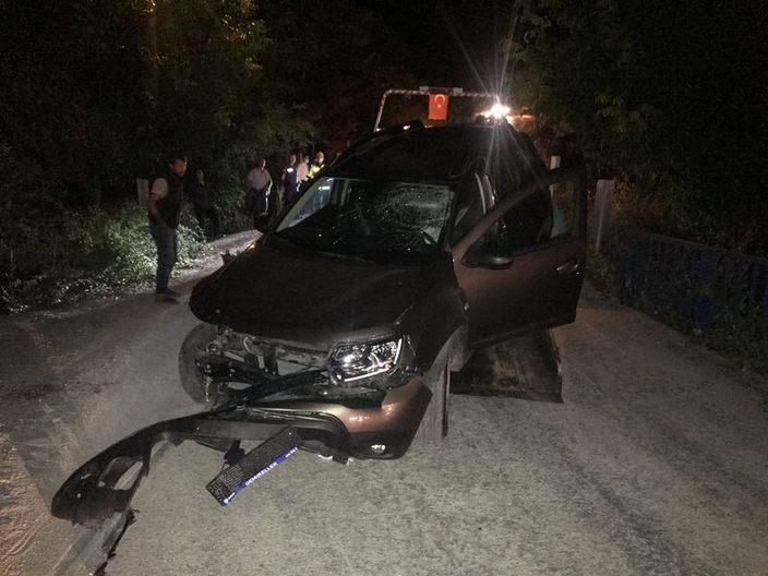 Bilecik'te köprü bariyerlerine çarpan cipteki 7 kişi yaralandı.