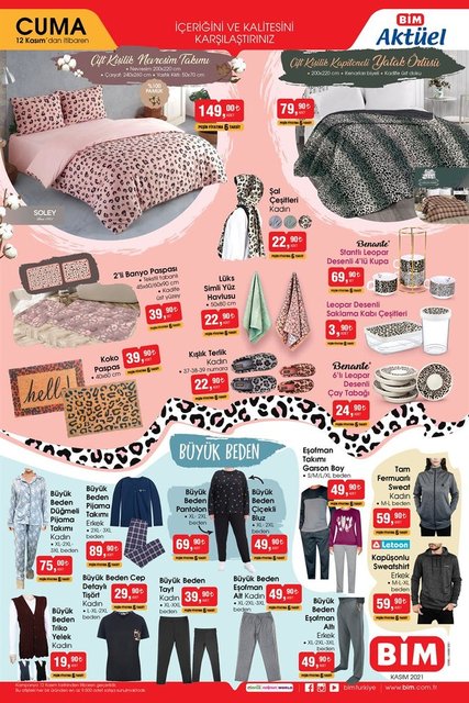 12 Kasım Cuma günü BİM marketlerde satışa sunulacak fırsat ürünleri şimdiden araştırılmaya başladı. Bim aktüel ürünler kataloğu belli oldu. 12 Kasım Cuma günü buharlı temizleyiciden pikaba, oyuncu kulaklığından borosilikat filtre kahve demliğine, nevresim takımından pijamaya kadar pek çok ürün indirimli fiyatlarıyla raflardaki yerini alacak. İşte BİM fırsat ürünleri 12 Kasım Cuma