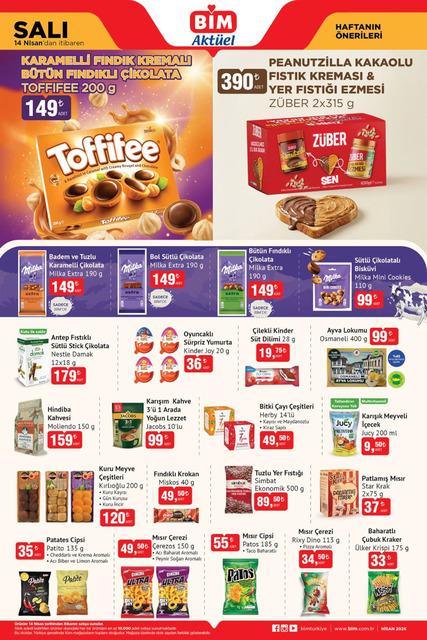 BİM marketin 14-17 Nisan aktüel broşürü yayınlandı. Önümüzdeki hafta Salı ve Cuma günleri tüm BİM marketlerde temel gıda ürünlerinden teknolojik aletlere, kişisel bakım ürünlerinden ev eşyalarına, mutfak gereçlerinden çocuk oyuncaklarına, beyaz eşyadan elektronik ürünlere kadar birçok çeşit ürün raflarda yerini alacak. İşte BİM 14-17 Nisan 2026 aktüel kataloğu...