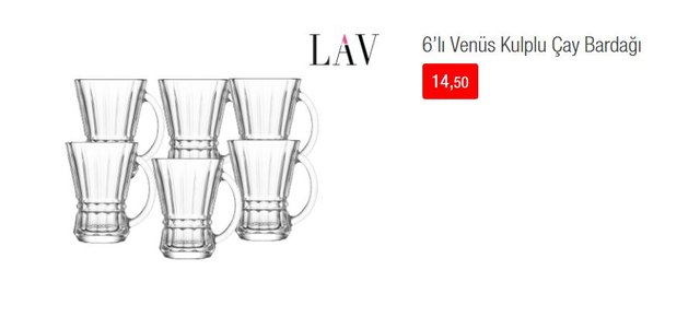 Altılı Venüs kulplu çay bardağı 14,50 TL