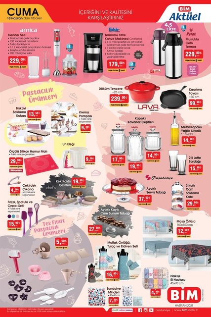 BİM 18 Haziran aktüel ürünler kataloğu yayınlandı. BİM'de bu hafta teknolojik aletler, yazlık pijama takımları ve pratif mutfak eşyaları satışa çıkacak. İşte BİM 18 Haziran 2021 aktüel ürünler kataloğu