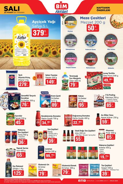 Yeni haftaya özel BİM aktüel ürünler kataloğu yayınlandı. 23 Aralık BİM aktüel ürünlerde bebek bezi, peçete, çorap, temizlik havlusu, şampuan, bulaşık deterjanı indirimde olacak. Mutfak gereçlerinden temizlik malzemelerine ve giyime kadar geniş bir ürün yelpazesi, BİM mağazalarında raflarda yerini alacak. İşte, 23 Aralık 2025 Salı BİM aktüel kataloğu indirimleri