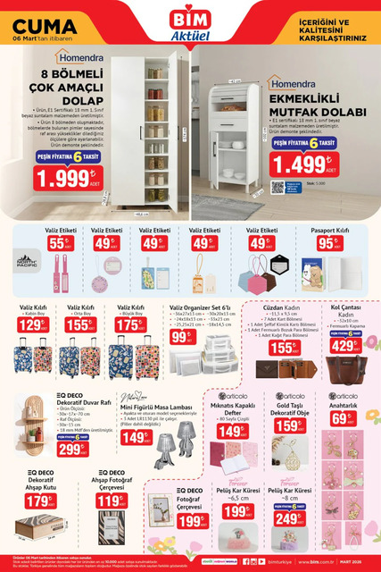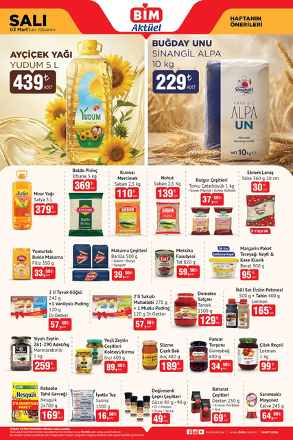 Mart ayına girilmesinin ardından BİM marketlere gelecek yeni ürünler belli oldu. BİM 3-6 Mart aktüel kataloğunda bulunan temel gıda ürünlerinden teknolojik aletlere, çocuk oyuncaklarından kişisel bakım ürünlerine, mutfak araç gereçlerinden seyahat eşyalarına kadar birçok ürün satışa çıkacak. İşte BİM 3-6 Mart Salı ve Cuma aktüel broşürü...