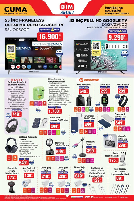Bu hafta Salı ve Cuma günleri satışa çıkacak BİM aktüel ürünleri belli oldu. Şubat ayının ilk haftasında BİM marketlerinde, televizyon, kulaklık, powerbank, ankastre set, saç kurutma makinesi, ütü, saç maşası, çay makinesi, elektrikli diş fırçası, cam kavanoz gibi birçok ürün alışverişseverlerle buluşacak. Bu kapsamda “BİM 3-6 Şubat aktüel kataloğu ile hangi ürünler satışta olacak?” sorusunun cevabı haberimizde. İşte ayrıntılar…