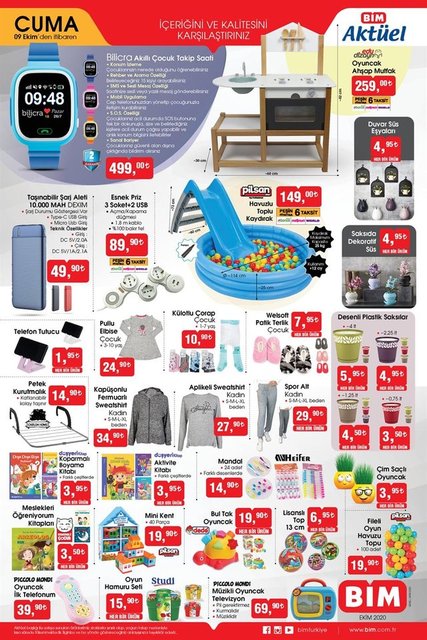 BİM 9 Ekim aktüel ürünler kataloğu satışa çıkıyor. BİM aktüel ürünler kataloğunda bu hafta; Pilsan Yürüme Arkadaşım, Fakir Şofben, Yoğurt Makinesi, Manual Rondo, Akıllı Çocuk Takip Saati, Ultrasonik Hava Nemlendirici ve Bebek Aktivite Oyuncağı gibi birçok indirimli fiyat yer alıyor. İşte, BİM 9 Ekim aktüel ürünler kataloğu...