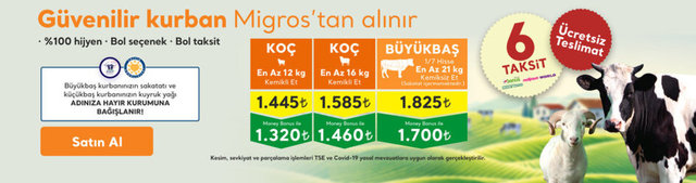 Kurban Bayramına sayılı günler kala büyük market zincirleri de hazırlıklara başladı. BİM A101 ŞOK Migros Carrefoursa kurbanlık fiyatlarını yayınladı