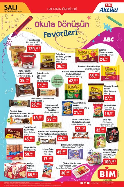10 Eylül 2024 BİM aktüel kataloğu yayınlandı. Böylece BİM markette bu Salı raflarda yerini alacak indirimli ürünler belli oldu. Salı kataloğuna göre market ürünleri, bebek bezi, çocuk iç giyim, makyaj malzemeleri, cilt bakım ürünleri ve okula dönüş temalı atıştırmalıklar raflarda yerini alacak. Peki BİM aktüel kataloğu ile bu hafta hangi ürünler indirimde? İşte 10 Eylül BİM aktüel kataloğu ile bu haftanın indirimli ürünleri…