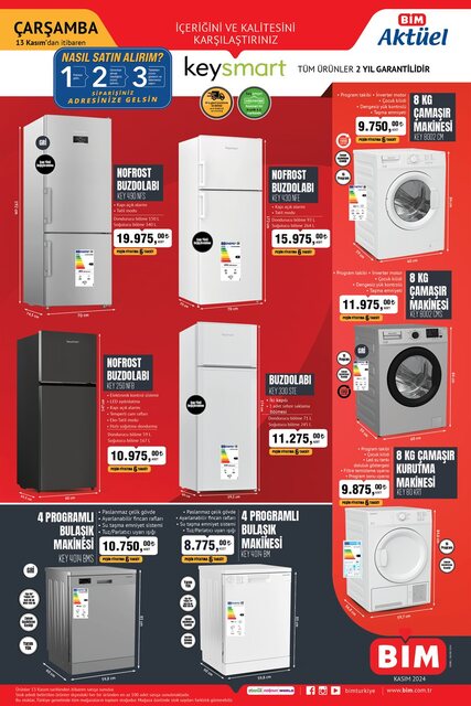 4 Programlı Bulaşık Makinesi KEY 4014 BMS: Su taşma emniyeti, tuz/parlatıcı uyarı ışığı gibi donanımlarla donatılan bu bulaşık makinesi, mutfak işlerinizi kolaylaştıracak. BİM 12 Kasım kataloğunda sadece 10.750 TL fiyatıyla yer alıyor.