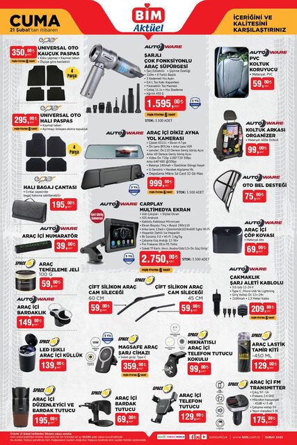 BİM 24-25 Şubat aktüel ürünler kataloğu alışverişseverler ile buluşmaya hazırlanıyor. BİM'de 24-25 Şubat'ta; araç ürünleri, teknolojik ürünler, giyim çeşitleri, küçük ev aletleri, gıda ile temizlik ürünleri ve birçok kategoride ürün indirimli fiyatlarıyla alıcılarını bekliyor. İşte BİM aktüel 24-25 Şubat aktüel ürünler kataloğu ve fiyat listesi...