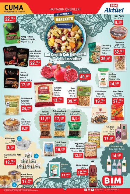 BİM aktüel ürünler listesini yayınlandı. Bilindiği gibi BİM aktüel ürünler kataloğu haftada iki kez Salı ve Cuma günleri yayınlanmaktadır. Bu hafta hangi ürünlerin indirimde olduğu alışverişseverler tarafından merak edilip araştırılmaya başlandı. Bu hafta BİM'de; Ankastre setinden, tek kişilik nevresim setine, polo yaka T-shirtlerden, pantolonlara, çocuk oyun setinden, kahvaltı setine, meşrubat bardağından, cüzdanlara, 8 bölmeli çok amaçlı dolaptan, tencere setine, aşure tenceresinden, aşurelik malzemelere daha birçok ürün raflardaki yerini alacak. İşte 5 Ağustos 2022 Cuma aktüel ürünler listesi...