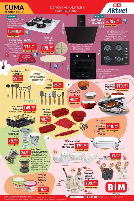 BİM katalog ürünleri bu hafta salı ve cuma günleri satışa çıkacak. BİM aktüel ürünler kataloğu indirimli ürünleri belli oldu. 21-24 Mart 2023 BİM aktüel kataloğunda kişisel bakım malzemeleri, yemek takımı, tencere seti, televizyon, ankastre set gibi birçok ürün müşterisiyle buluşacak. İşte, BİM 21-24 Mart aktüel ürünler kataloğu indirimli ürünler tam listesi ve fiyat bilgisi...