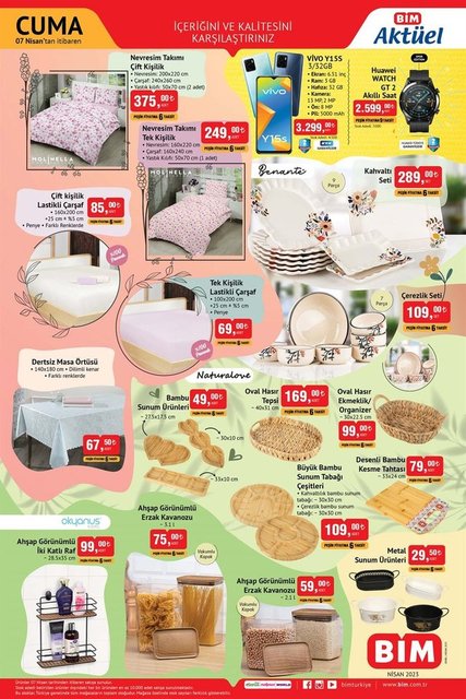 BİM aktüel kataloğu ile fiyat listesi alışveriş takipçilerinin gündeminde yer alıyor. Haftanın BİM aktüel ürünler kataloğu yayınlandı. BİM'de bu hafta; çeyiz paketinden, küçük ev aletlerine, beyaz eşyalardan, teknolojik ürünlere, kozmetik malzemelerden, mutfak eşyalarına birçok kategoride ürün indirimli fiyatlarıyla alıcılarını bekliyor. İşte BİM aktüel 7 - 14 Nisan kataloğu ile fiyat listesi...