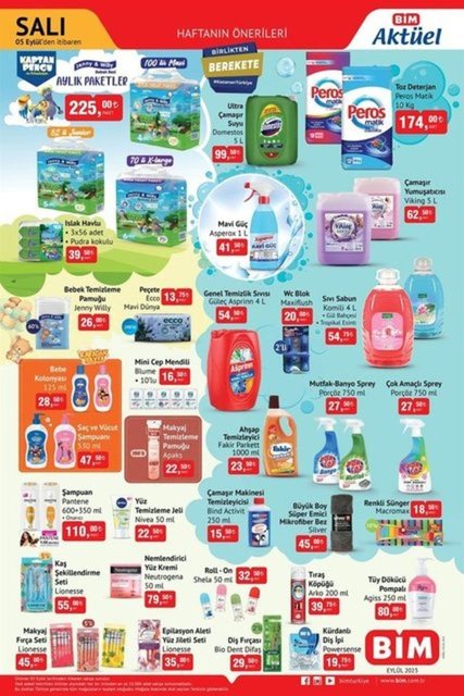 5 - 8 Eylül BİM aktüel ürünler kataloğu yayınlandı. BİM'de bu hafta; küçük ev aletlerinden, beyaz eşyalara, ankastre setinden, kozmetik malzemelere, giyim seçeneklerinden mutfak eşyalarına birçok kategoride ürün indirimli fiyatlarıyla alıcılarını bekliyor. İşte BİM aktüel 5 - 8 Eylül 2023 kataloğu ve fiyat listesi...