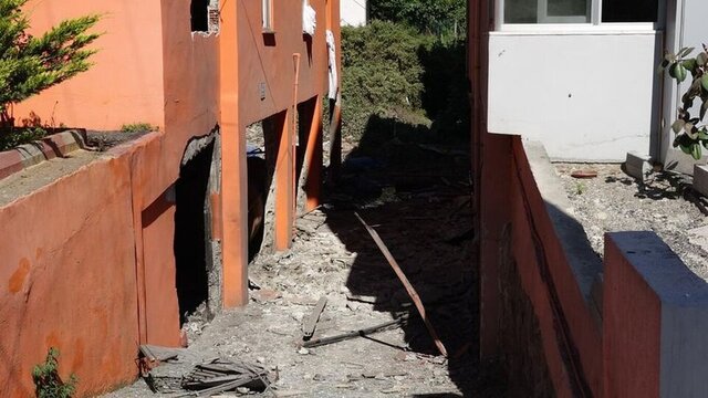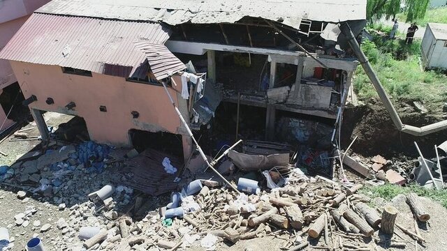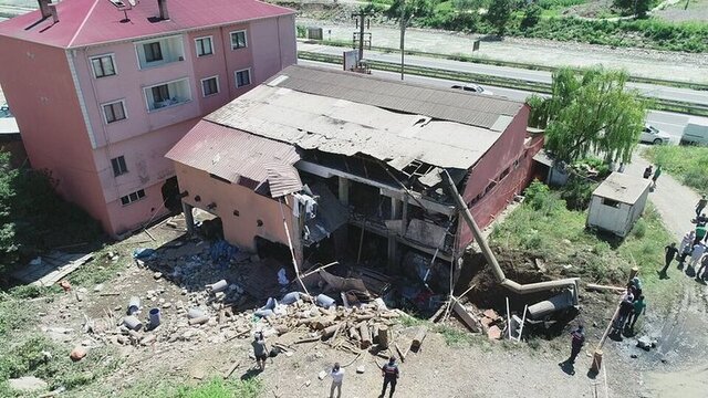 Patlama sonrası işletmede duvarlarından savrulan beton parçalarının çevredeki binalara da ulaşıp, kısmen hasar oluştuğu belirlendi.