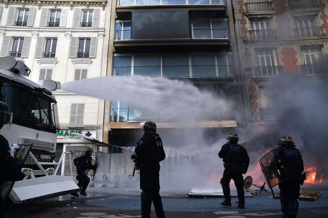 Başkent Paris başta olmak üzere Nanten ve Lyon'da bazı göstericiler araçları ateşe verdi. Polis göstericilere göz yaşartıcı gaz, tazyikli su ve copla müdahale etti.
