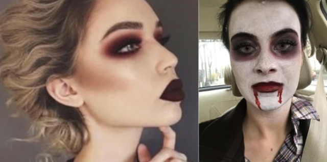 3. "Soldaki fotoğrafı istedim, sadece biraz sahte kanla. Sağdaki ise makyaj sanatçısının bana yaptığı.1