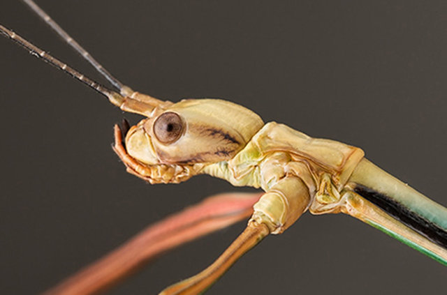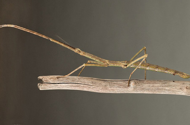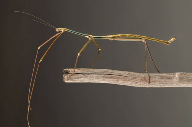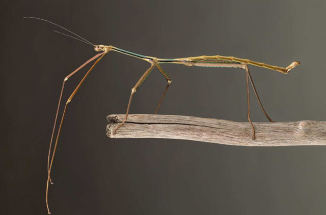 Uzmanlık alanı böcekler olan Cao Li adlı Çinli bir araştırmacı, değnek çekirgesi türünde olan böceğin boyu görenleri hayrete düşürüyor.