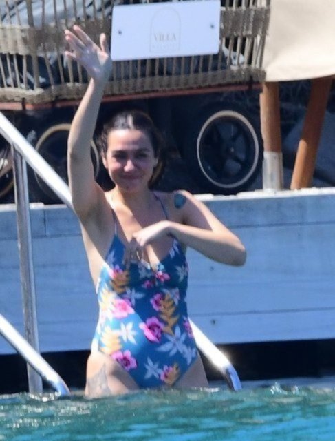Denizin ve güneşin keyfini çıkaran Akalay ve Çelikkol, Cennet Koyu'nda objektiflere yansımıştı. Denize girmeyi tercih etmeyen Çelikkol ise gün boyu üstünden çıkarmadığı tişörtü ile oturmayı tercih etmişti.