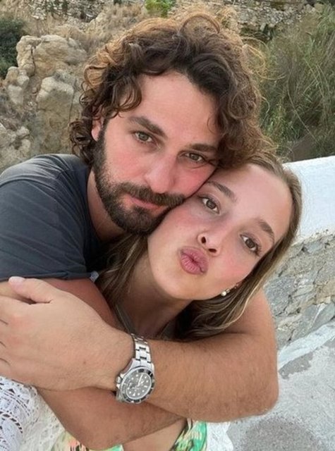 İkili, şezlonglarda oturduğu sırada birbirlerine sarılıp öpücükler kondurdu.