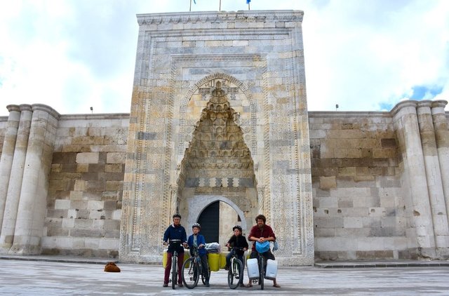 AA'nın haberine göre Antalya ve Fethiye ziyaretlerinin ardından yönlerini Kapadokya'ya çeviren Servas ve ailesi, UNESCO tarafından 2014'te Dünya Mirası Geçici Listesi'ne alınan Sultanhanı Kervansarayı'nda mola verdi. Tarihi dokusu ve mimarisiyle cazibe merkezi haline gelen Sultanhanı Kervansarayı'nı gezen aile, Kapadokya'ya gitmek üzere pedal çevirdi.