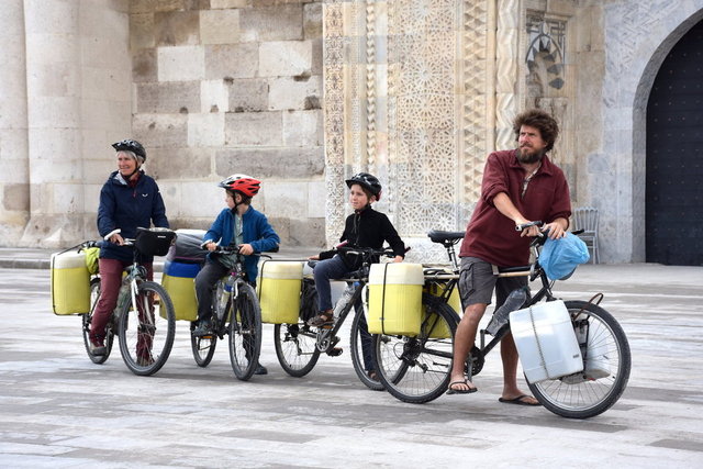 Bisikletleriyle dünya turuna çıkan Fransız aile Aksaray'da mola verdi