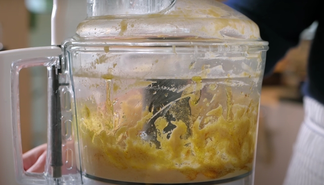 Kıvam almaya başladığı sırada sarımsaklarınızı ezin ve ezdiğiniz sarımsakları, kimyonu, tuzu, karabiberi de karışımınıza ekleyin. Malzemeler pürüzsüz olana kadar çırpmaya devam edin.