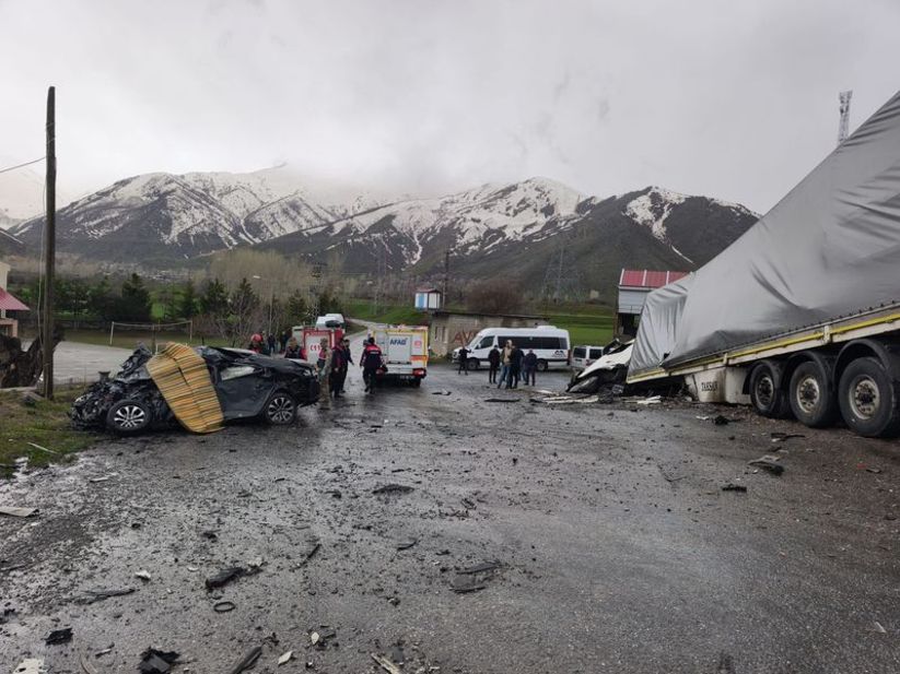 Kaza, sabah saatlerinde Tatvan-Van kara yolu Düzcealan köyü yakınlarında meydana geldi. Yağmurun etkili olduğu bölgede Van yönünden gelen TIR, karşı yönden gelen otomobille çarpıştı. Çevredekilerin ihbarı üzerine kaza yerine AFAD, UMKE, jandarma, itfaiye ve sağlık ekipleri sevk edildi.