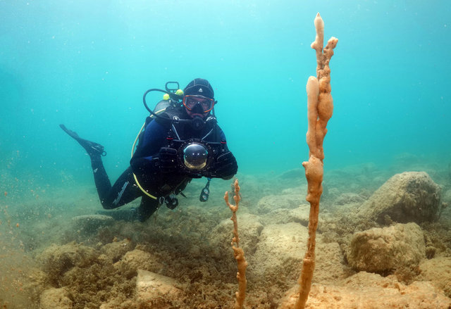Su altı belgesel yapımcısı ve görüntü yönetmeni Tahsin Ceylan ile Sahil Güvenlik Dalış Emniyet Güvenlik ve Arama Kurtarma (DEGAK) Timleri, Bitlis'in Tatvan ilçesindeki Nemrut Krater Gölü'nü su altından görüntüledi