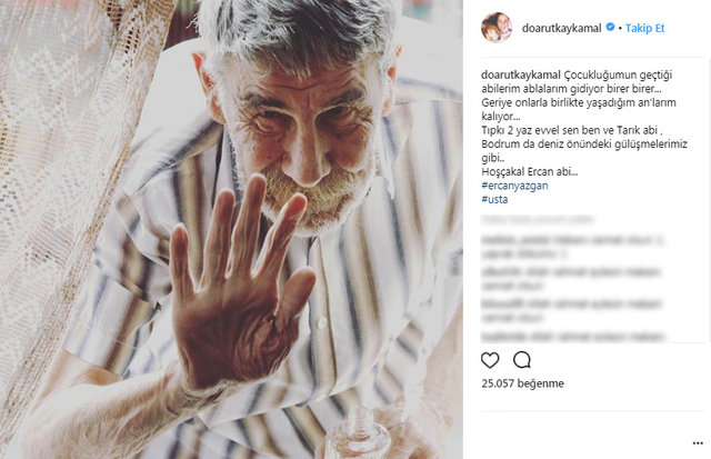 DOĞA RUTKAY KAMAL: Çocukluğumun geçtiği abilerim ablalarım gidiyor birer birer... Geriye onlarla birlikte yaşadığım anlarım kalıyor... Tıpkı 2 yaz evvel sen ben ve Tarık abi , Bodrum da deniz önündeki gülüşmelerimiz gibi.. Hoşçakal Ercan abi...