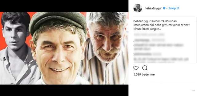BEHZAT UYGUR: Kalbimize dokunan insanlardan biri daha gitti... Mekanın cennet olsun Ercan Yazgan...