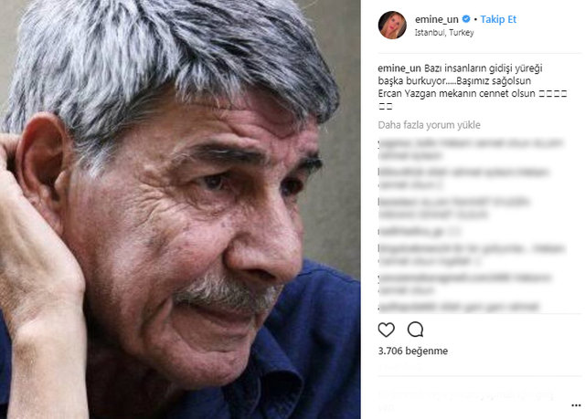 EMİNE ÜN: Bazı insanların gidişi yüreği başka burkuyor... Başımız sağolsun. Ercan Yazgan mekanın cennet olsun...