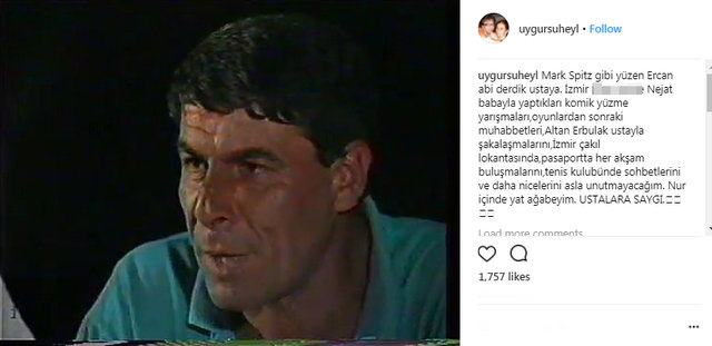 SÜHEYL UYGUR: Mark Spitz gibi yüzen Ercan abi derdik ustaya. İzmir'de Nejat babayla yaptıkları komik yüzme yarışmaları,oyunlardan sonraki muhabbetleri,Altan Erbulak ustayla şakalaşmalarını,İzmir çakıl lokantasında,pasaportta her akşam buluşmalarını,tenis kulubünde sohbetlerini ve daha nicelerini asla unutmayacağım. Nur içinde yat ağabeyim. USTALARA SAYGI...