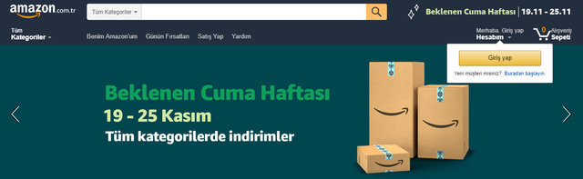 ABD’de Black Friday’in önemli adreslerinden biri olan Amazon, iki ay önce hizmet vermeye başladığı Türkiye’de bugüne ‘Beklenen Cuma’ adını verdi. 19-26 Kasım arasında düzenlediği “Beklenen Cuma” haftasında farklı kategorilerde indirimli fiyatlar ve 50 TL üzeri alışverişlerde ücretsiz teslimat hizmeti sunacak. 26 Kasım’daki Cyber Monday (Siber Pazartesi) ise Amazon’un Türkiye sitesinde ‘En İyi Pazartesi’ kampanyası olarak tüketicilerin karşısına çıkacak.