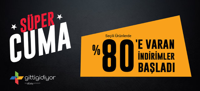 Black Friday’e “Süper Cuma” kampanyasıyla katılan GittiGidiyor’dan yapılan açıklamaya göre 23 Kasım Cuma günü geçerli olacak kampanya kapsamında tüketicilere yüzde 80’e varan oranda indirim sunulacak. Kampanya perşembe gününü cumaya bağlayan gece saat 00:00’da başlayacak ve 24 saat boyunca devam edecek.