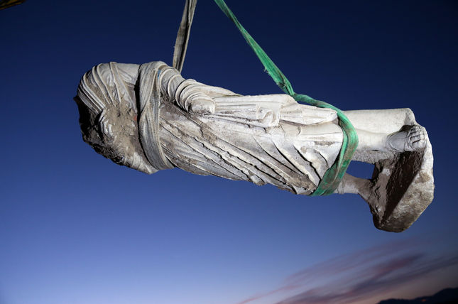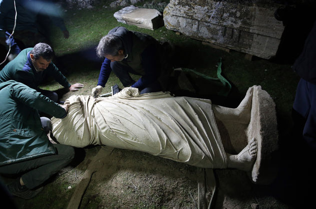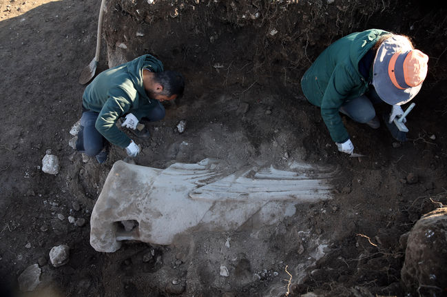Kazısı yapılarak çıkarılan heykellerden birinin 185 santimetre boyunda olduğu ve başının olmadığı, diğerinin de başı, sağ kolu ve iki bacağının eksik olduğu belirlendi.