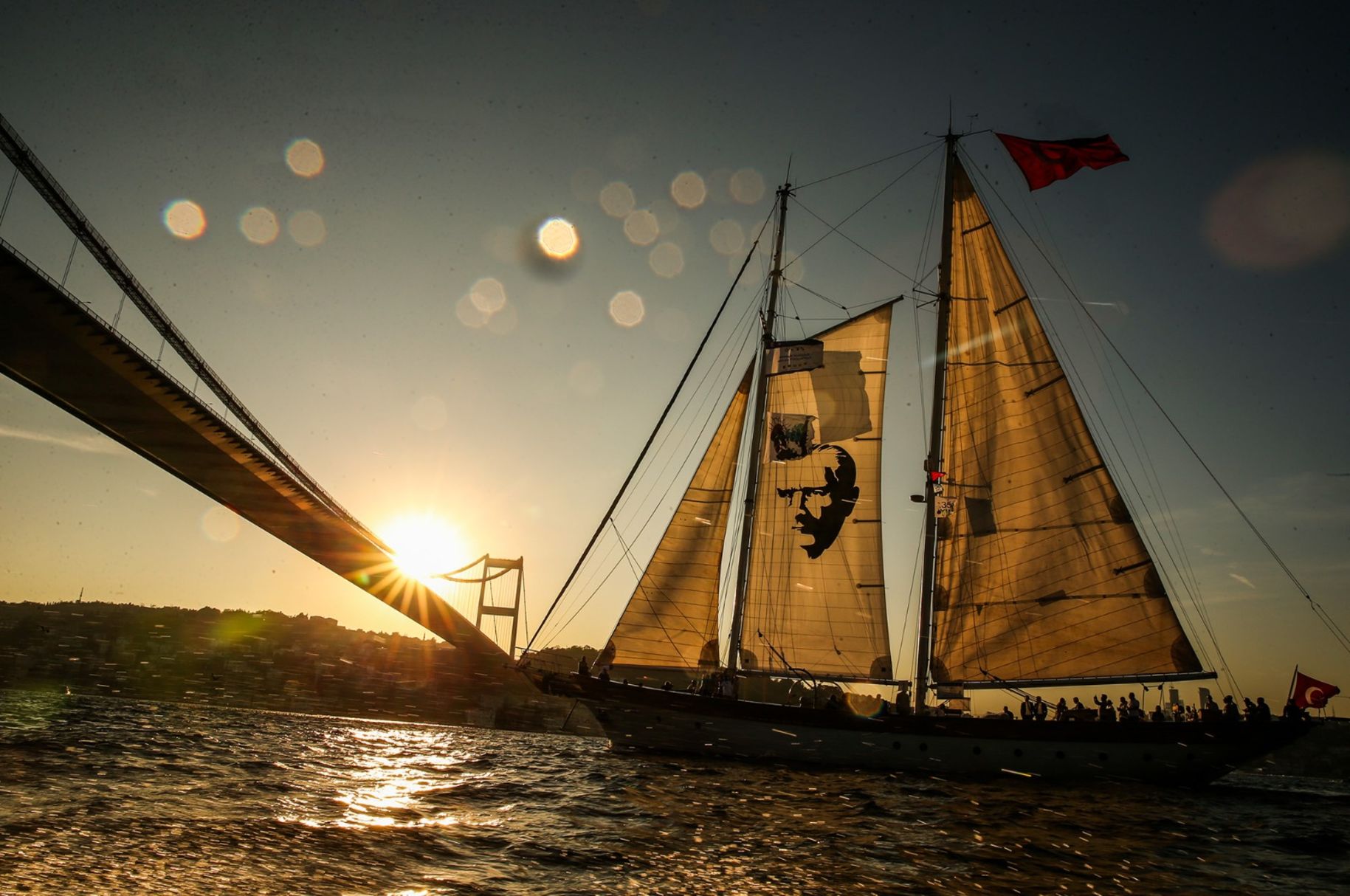 Bodrum'dan gelen filo, İstanbul'daki yelken kulüplerinden katılan yatlar ve sahil güvenlikle birlikte bir şölen havasında 8 Ekim'de İstanbul Boğazı'nı geçti. Türkiye İş Bankası İstanbul Boğazı Yelkenli Kortej Geçişinin ardından Dolmabahçe Sarayı önünde anma selamlaması yapıldı.