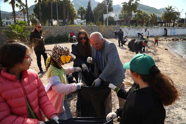 Temizlik çalışmasına Bodrum Belediye Başkanı Tamer Mandalinci’yi temsilen Başkan Yardımcısı Tanju Aksu, TÜRÇEV Muğla Koordinatörü Gürcan Kaya, ilgili birim müdürleri ve personeller, mavi bayrağa sahip otel yetkilileri ile Zeyyat Mandalinci İlkokulu öğrencileri katıldı.