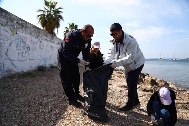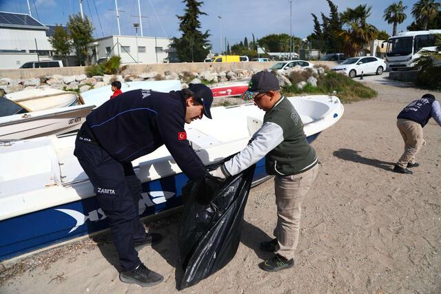 Deniz ve kıyı temizliği konusunda farkındalık oluşturmak ve ekosisteme zarar veren atıkları tespit etmek amacıyla Bodrum Belediyesi Destek Hizmetleri ile Temizlik İşleri Müdürlüğü koordinasyonunda Turgutreis Marina Halk Plajında temizlik çalışması yapıldı.