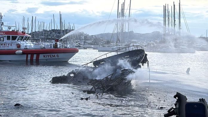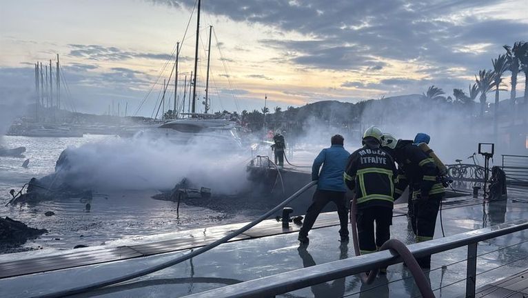 Muğla'nın Bodrum ilçesinde marinada demirli 8 motoryatı etkileyen yangın kontrol altına alındı. Yangında motoryatlardan 7'si batarken, birinde hasar meydana geldi