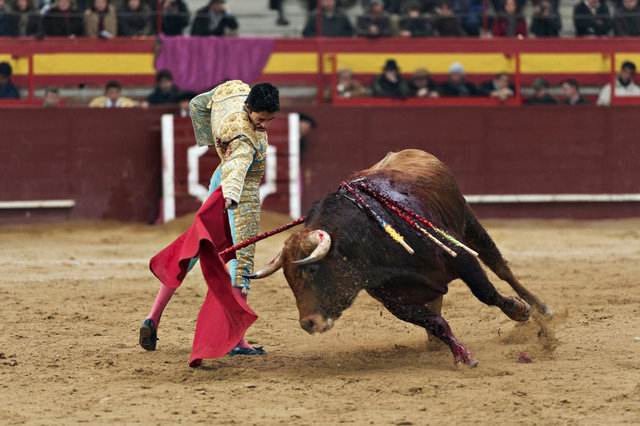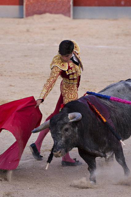Aslında boğalar kırmızı renge sinirlenmez. Sinirlendikleri şey pelerinin agresif halleri ve kırbaçlanmaktır. Ayrıca boğaların gözlerinde L- konileri bulunmadığı için kırmızı rengi göremezler. Boğalar kırmızıyı, sarı ve gri arasında bir renk olarak görür.
