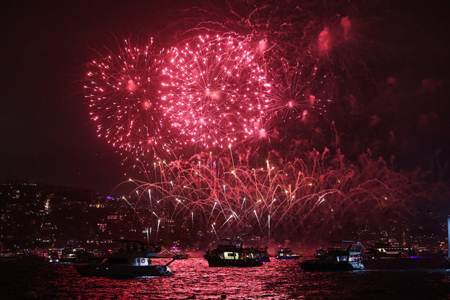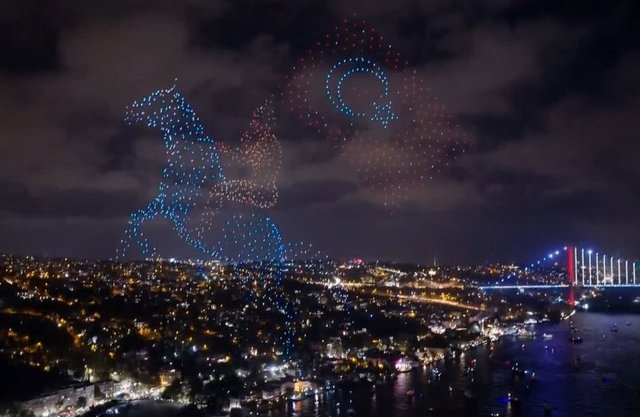 Cumhurbaşkanı Recep Tayyip Erdoğan'ın 100. Yıl Hitabı'nın ardından İstanbul Boğazı'nda dron, havai fişek ve ışık gösterileri yapıldı.