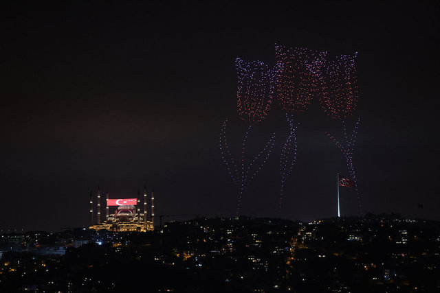 Vatandaşların telefon ışıkları ve bayraklarla yaptığı gösteri renkli görüntülere sahne oldu. Etkinlik alanında 500 drone ile gerçekleştirilen muhteşem gösteri büyük beğeni topladı.